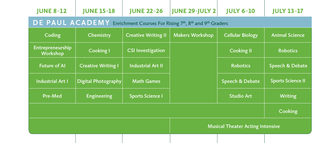 Calling all students and athletes ages 8—14! One-week summer enrichment courses and sports academies are just a click away. Courses run from June 8 to July 17. Visit the Summer Institute page today.