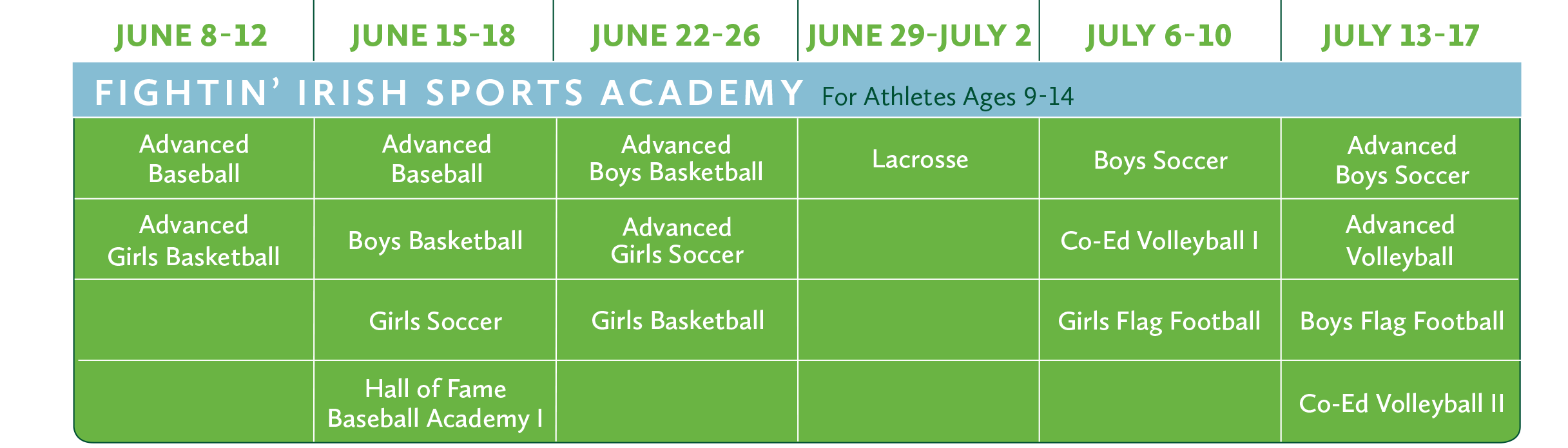 Calling all students and athletes ages 8—14! One-week summer enrichment courses and sports academies are just a click away. Courses run from June 8 to July 17. Visit the Summer Institute page today.